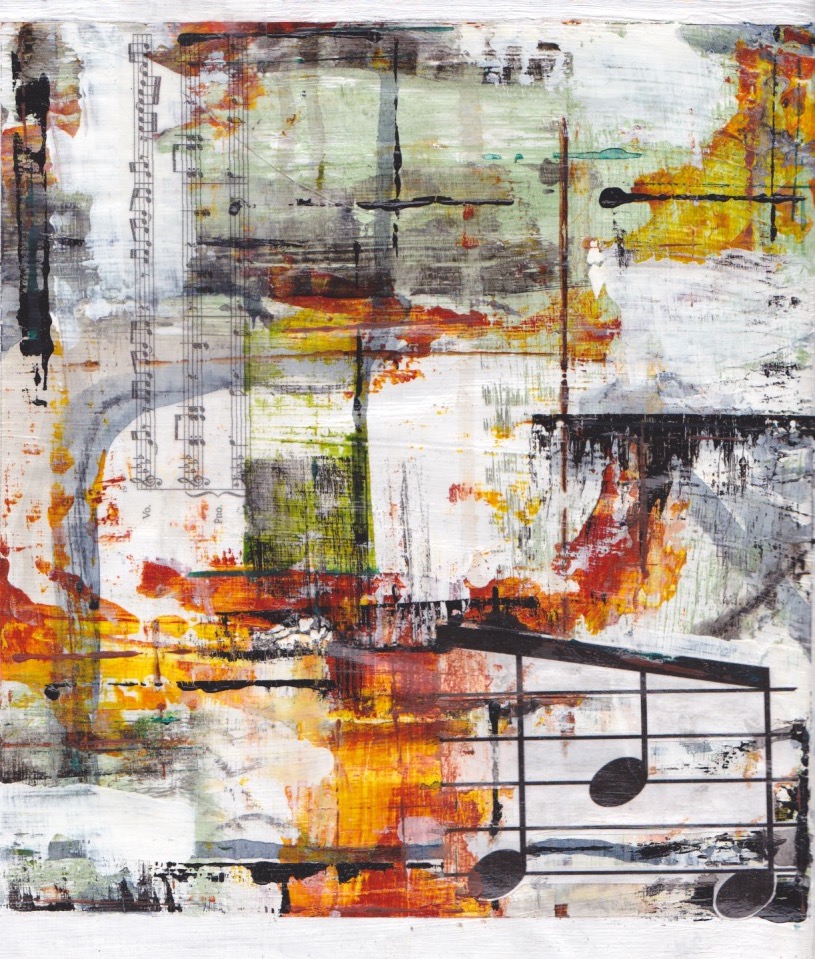 At the suggestion of a friend, I recently joined a local choir group and this was one of the songs in the chosen repertoire. I had never been in a choir before, but it re-ignited my love for singing and gave me more confidence. The energetic choir leader and the confidence building course leader of an online course I was taking at the same time helped me to reach for colours, formats and materials I wouldn’t usually go near – small, orange and paper. What resulted was a fun, bright series where the music could be more prominent, like my voice singing a song from my youth.